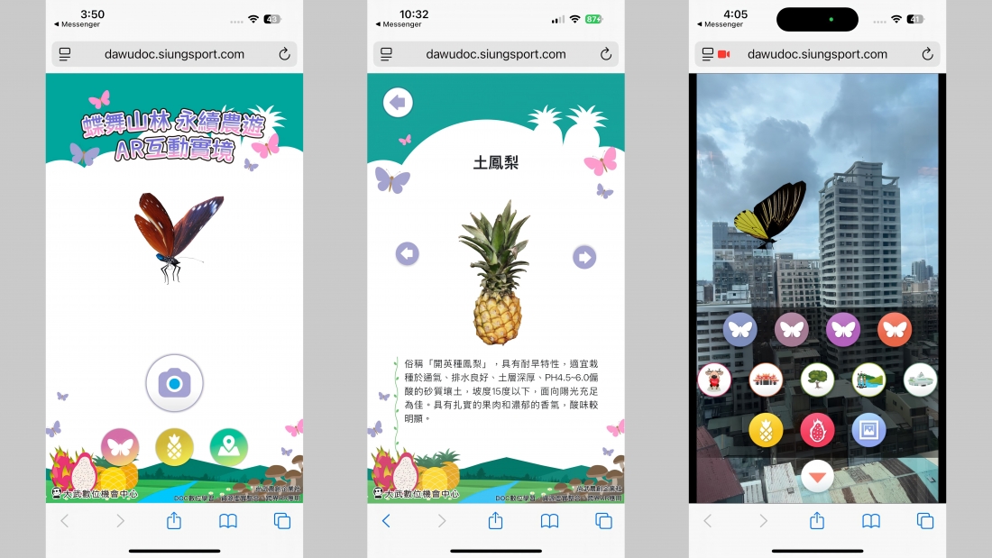 臺東縣大武DOC透過AR技術,將珍貴的紫斑蝶生態資源轉化為引人入勝、寓教於樂的數位學習體驗,使用者能更直觀且具互動性地親身感受這場國寶級自然現象所帶來的震撼與感動。